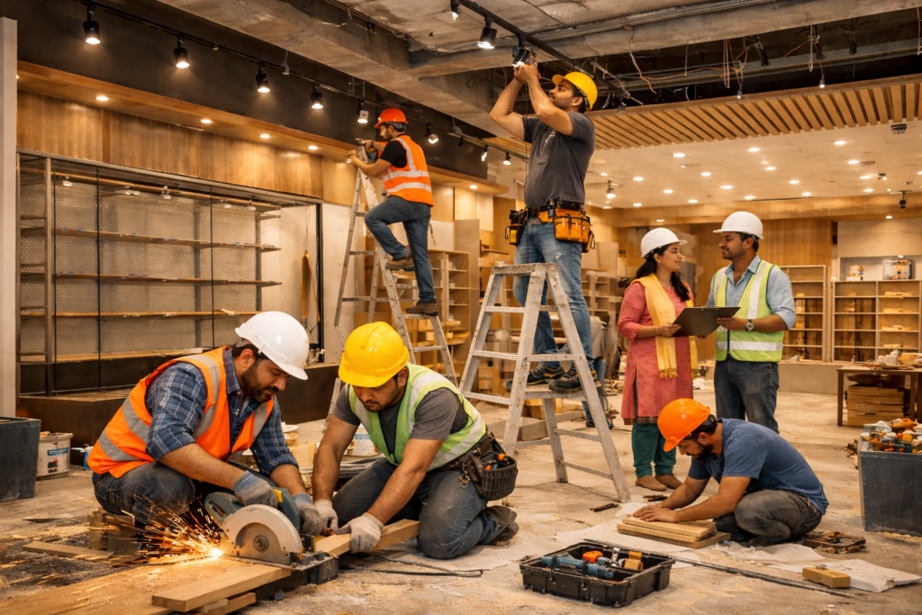 We handle complete commercial store and workspace setups by taking single-point responsibility for planning, coordination, execution, and handover. Our role is to remove complexity for business owners by managing all fit-out activities under a defined scope.